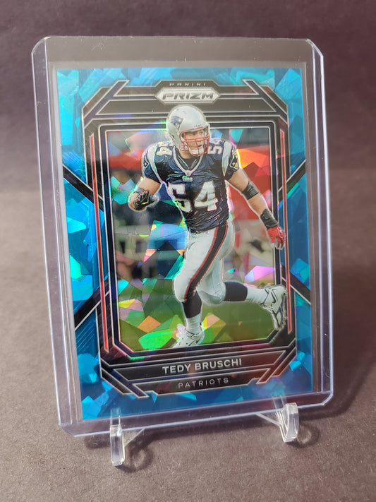 2022 Panini Prizm Football Tedy Bruschi #206 Blue Cracked Ice Parallel /99 Refractor